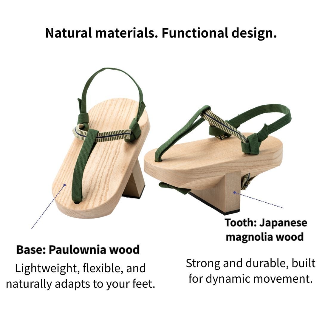 • Dai (Platform): Paulownia (桐) – A lightweight yet durable wood, often used in traditional Japanese footwear and furniture due to its shock-absorbing properties and moisture resistance.