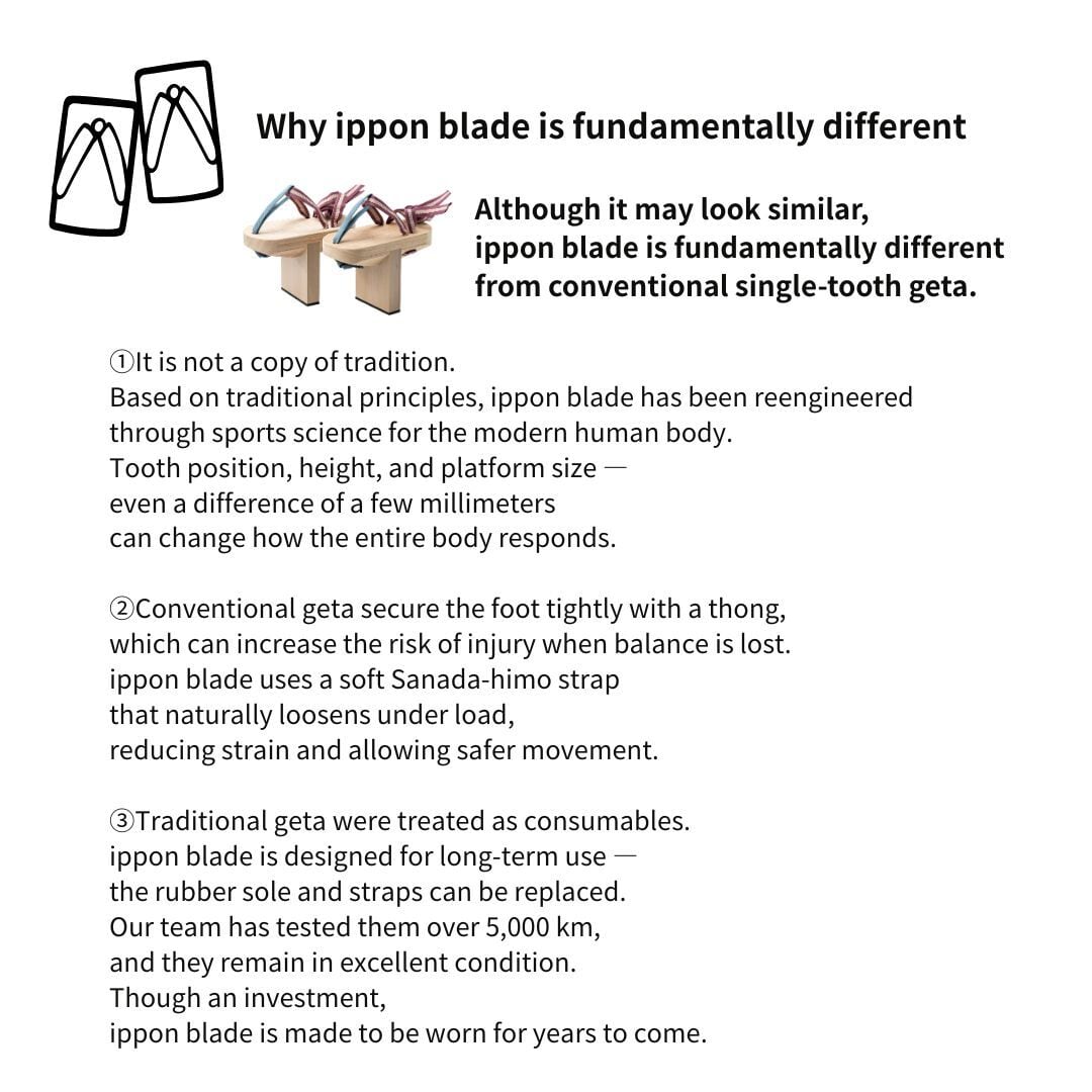 ippon blade 1000 (zen) is built with the yamato ratio, inspired by the proportions of ancient Japanese architecture and aesthetics. This low-rise model is designed for stability, mindfulness, and smooth movement, making it an excellent choice for daily walking, slow training, and body conditioning.